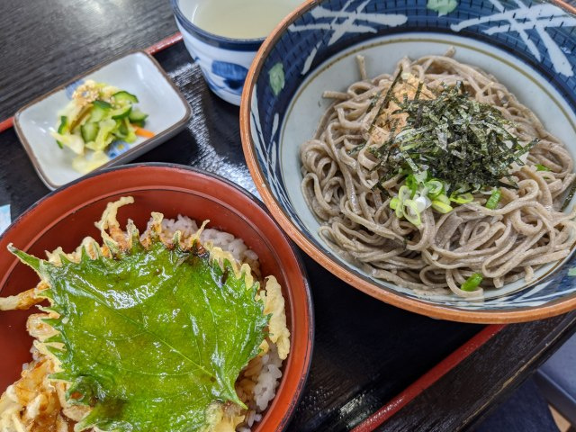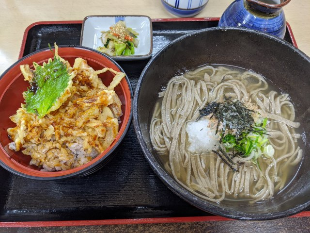 今回はちょっと気温も下がっていた日だったので「そば定食」の「釜揚げそば」&「ミニかき揚げ丼」をチョイス!