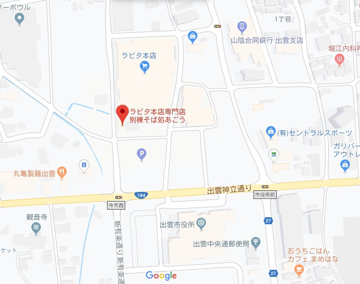 今回は出雲の老舗スーパー「ラピタ」の敷地内にあるそば屋さん「そば処あごう」のご紹介