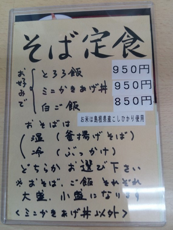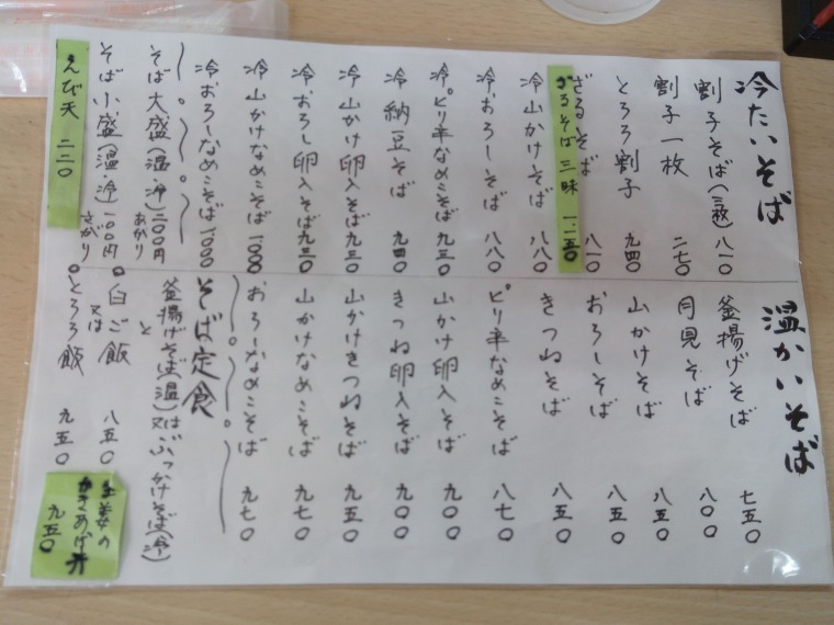そばのメニューです
