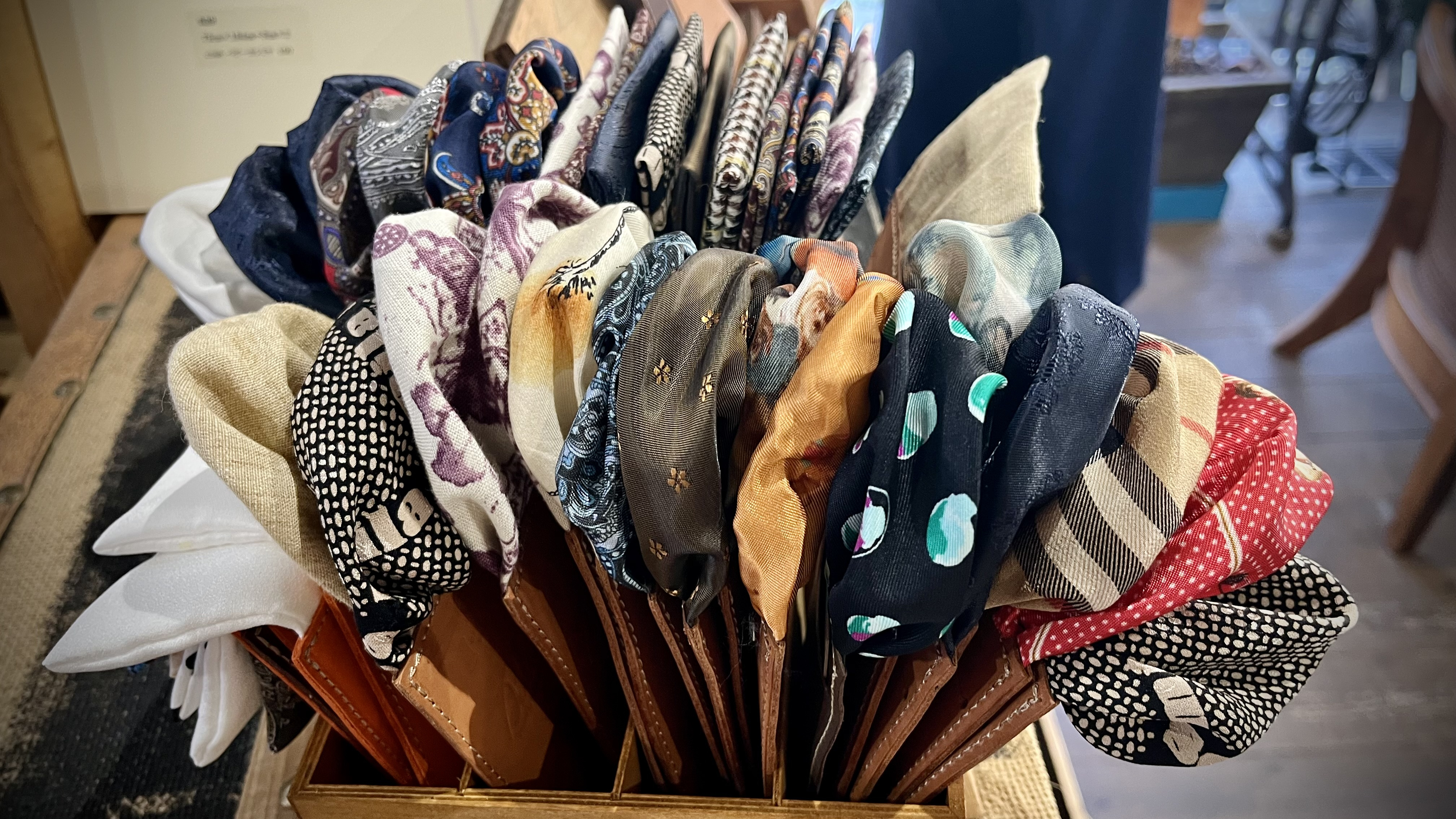これは『Biella』オリジナル定番アイテムスマートチーフです!名刺を数枚入れることができ、大人気です!